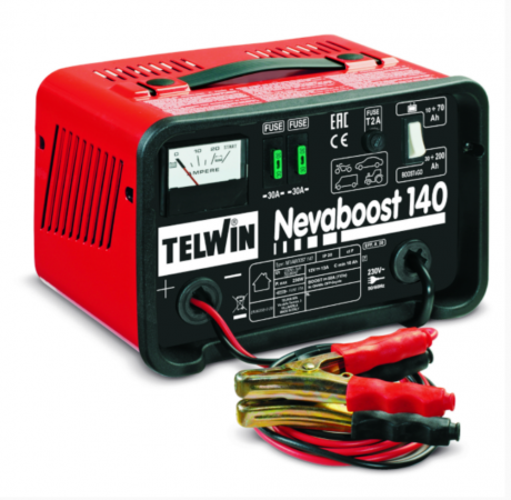Сетевое зарядное устройство Telwin NEVABOOST 140, предназначено для зарядки свинцовых аккумуляторных батарей со свободным электролитом (WET) используемых на автомобилях оснащенных двигателями (бензин и дизель). С защитой от перегрузок и измененной полярности. Встроенный амперметр. Корпус, в котором изготовлено устройство, имеет степень защиты IP 20 и предусмотрена защита от непрямых контактов, при помощи проводника заземления. Зарядный ток, подаваемый оборудованием, понижается в соответствие с характеристической кривой W, в соответствие стандарта DIN.