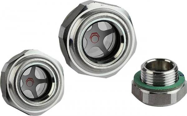 Указатель уровня масла, в корпусе, рефлектор из алюминия. Смотровое стекло из прозрачного натурального стекла, термостабильное до температуры 150 °C.